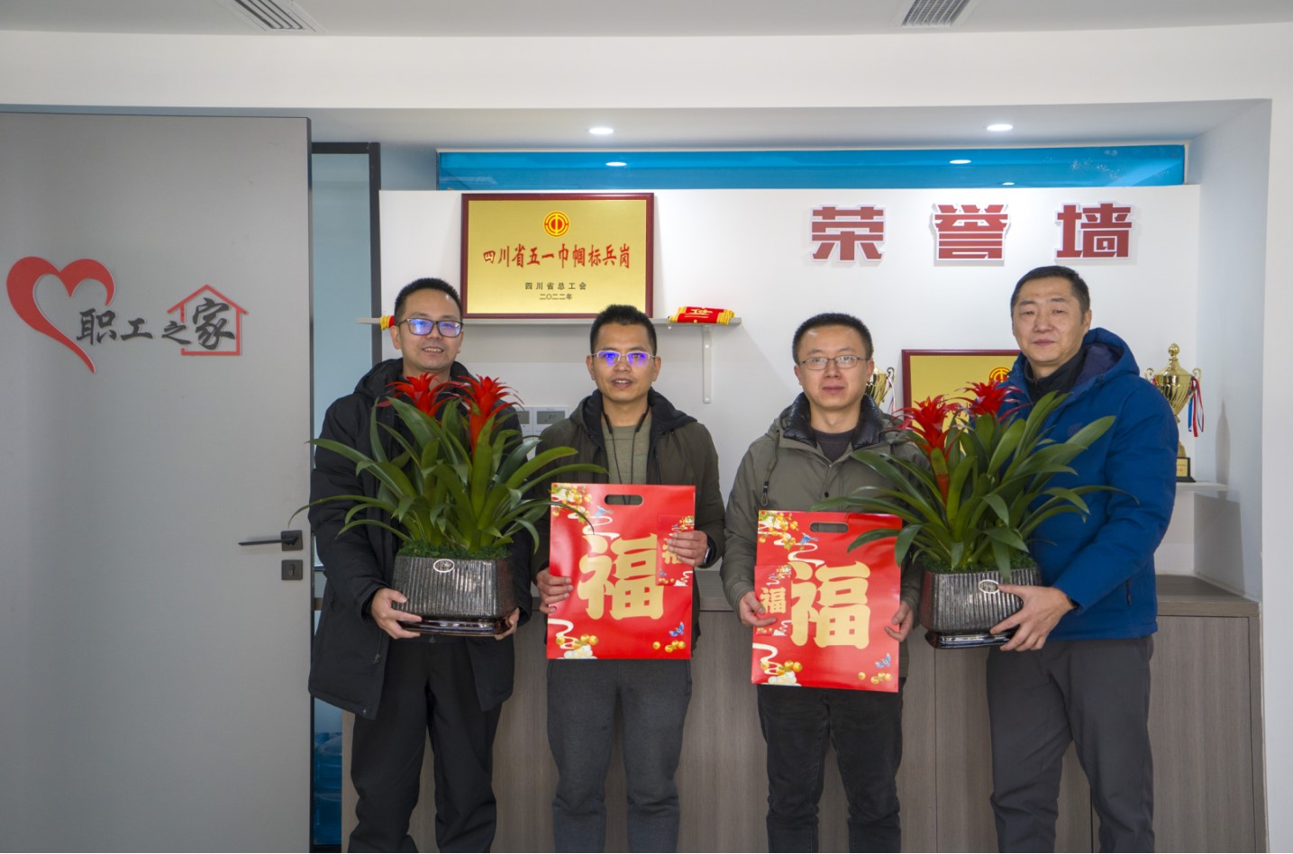 1月18日,青羊區(qū)草堂街道總工會(huì)副主席葉兵慰問公司“青羊工匠”唐全民、陳昌盛。