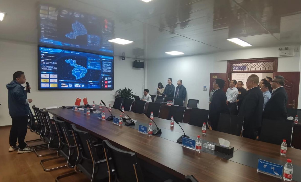 在參建單位水建項目部,EPC項目總工通過信息化系統(tǒng)平臺詳細匯報了Ⅰ標承擔建設任務的情況,在電子屏幕上現(xiàn)場演示了信息化的設備運用并展示建設現(xiàn)場重點部位的實時畫面。