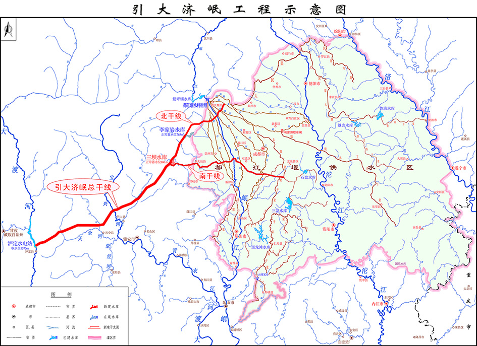 按照推薦方案,引大濟岷工程以大渡河為集中水源,自流引水25億立方米至都江堰供水區(qū),形成以三壩水廠、羅家河壩分水閘和柏條河等為主要交水點的”北干線+預留南干線“方案,進而切實構建成都平原岷江、大渡河雙水源水資源配置保障格局,都江堰、引大濟岷工程雙輸水通道供水安全保障體系。