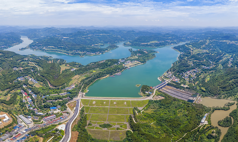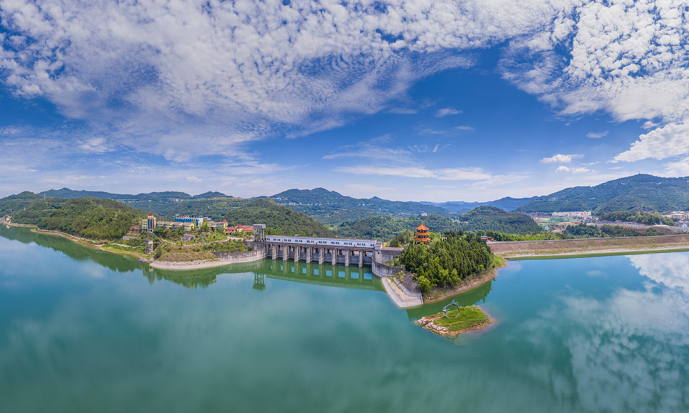 升鐘水利工程控灌南充市轄區(qū)內(nèi)的南部、閬中、西充、順慶、嘉陵、蓬安、儀隴以及廣安市的武勝、遂寧市的蓬溪、廣元市的劍閣縣等十縣(市、區(qū))的204.74萬畝耕地。該工程由樞紐工程和灌區(qū)配套工程兩大部分組成。樞紐工程由大壩、溢洪道、放空隧洞和左右干渠取水口及電站等五大部分組成。大壩壩址位于南部縣升水鎮(zhèn)碑埡廟河段,控制流域面積1756km2,水庫(kù)總庫(kù)容為13.39億m3,有效庫(kù)容為6.72億m3,防洪庫(kù)容為2.71億m3,墊底庫(kù)容為3.96億m3,五日設(shè)計(jì)洪水洪量為9.70億m3,五日校核洪水洪量為13.40億m3。