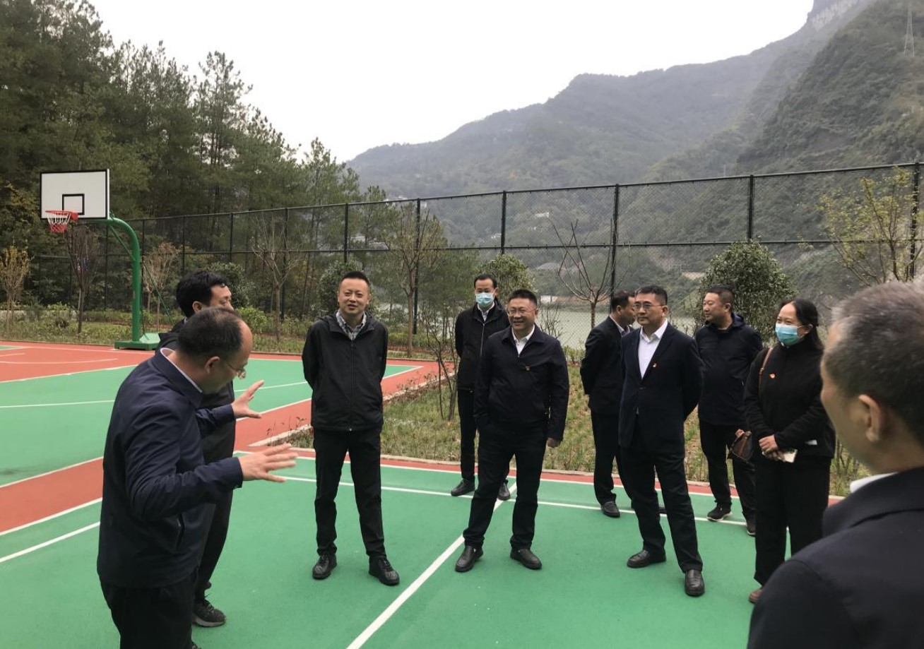參加活動的黨員及非黨員職工在紅魚洞水庫大壩前合影