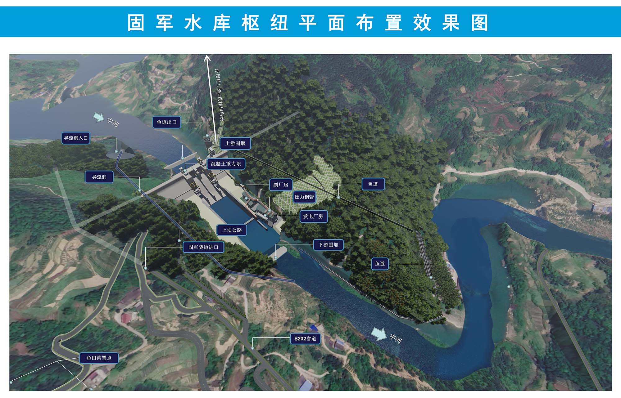 固軍水庫的工程任務(wù)以防洪為主,兼顧發(fā)電。固軍水庫為Ⅱ等大(2)型工程,庫總庫容為1.27億立方米,防洪庫容為0.89億立方米,調(diào)節(jié)庫容為0.88億立方米,電站裝機容量為11.6兆瓦,多年平均發(fā)電量為3417萬千瓦時。工程施工總工期為44個月,工程靜態(tài)總投資為293824萬元。