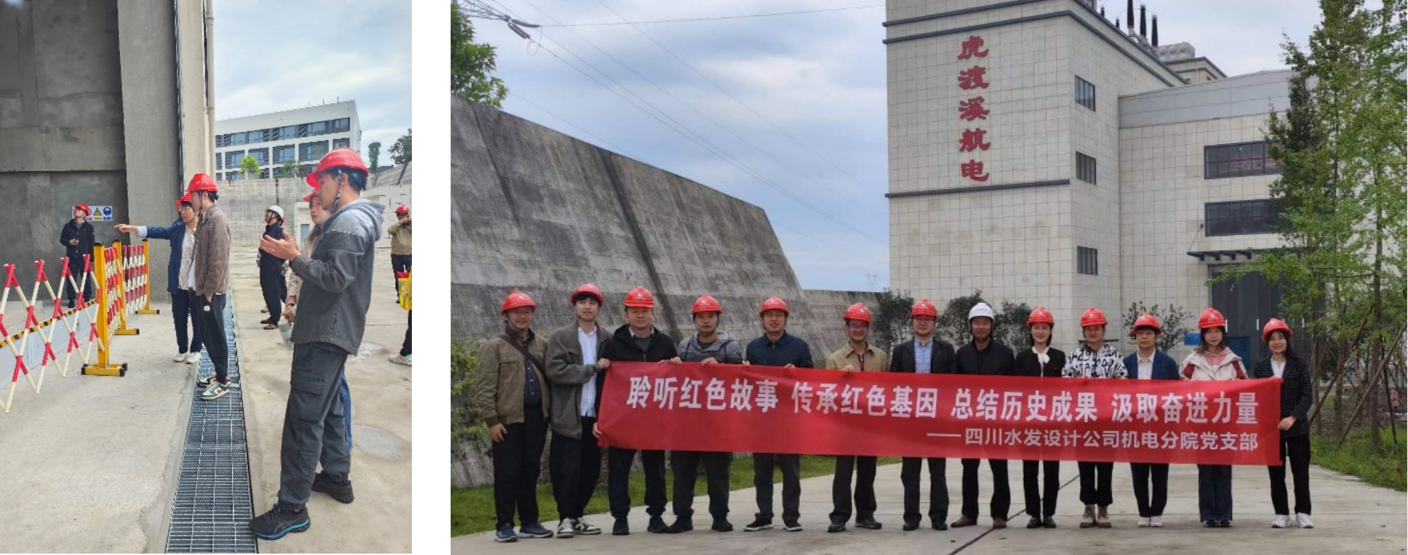 翌日,黨員們來到了虎渡溪航電樞紐工程現(xiàn)場?;⒍上诫姌屑~工程是岷江中游規(guī)劃開發(fā)中的第四級,今年3月實現(xiàn)首臺機組并網(wǎng)發(fā)電,并于8月實現(xiàn)三臺機組全部投運。機電分院參與虎渡溪航項目的5名專業(yè)負責人均為黨員。